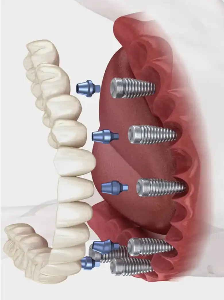 Par rapport à l’All-On-4, l’All-On-6 apporte un soutien supplémentaire, particulièrement recommandé pour les patients ayant une qualité osseuse limitée ou nécessitant une meilleure répartition des forces de mastication. Cette technique permet souvent de réduire le besoin de greffe osseuse tout en garantissant un résultat durable.