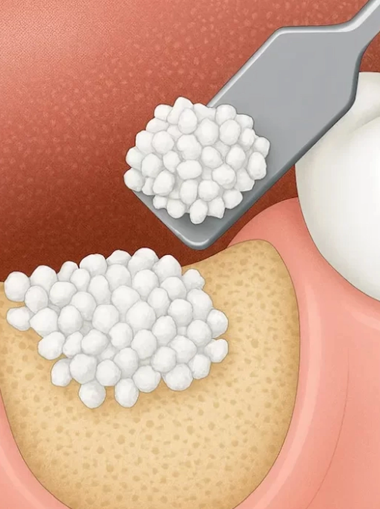Avec le temps, le matériau se fusionne avec l’os naturel (ostéo-intégration), créant une base stable pour les implants dentaires et assurant leur succès à long terme.
