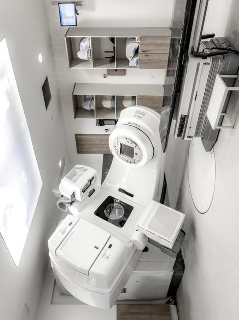 Pour une radiothérapie externe, le patient sera couché sur une table, positionné en fonction de la zone traitée. Une machine, communément appelée machine à accélérateur linéaire, est alors mise en place pour diriger les faisceaux de rayonnement vers la zone ciblée. Le patient devra rester aussi immobile que possible pendant le traitement.