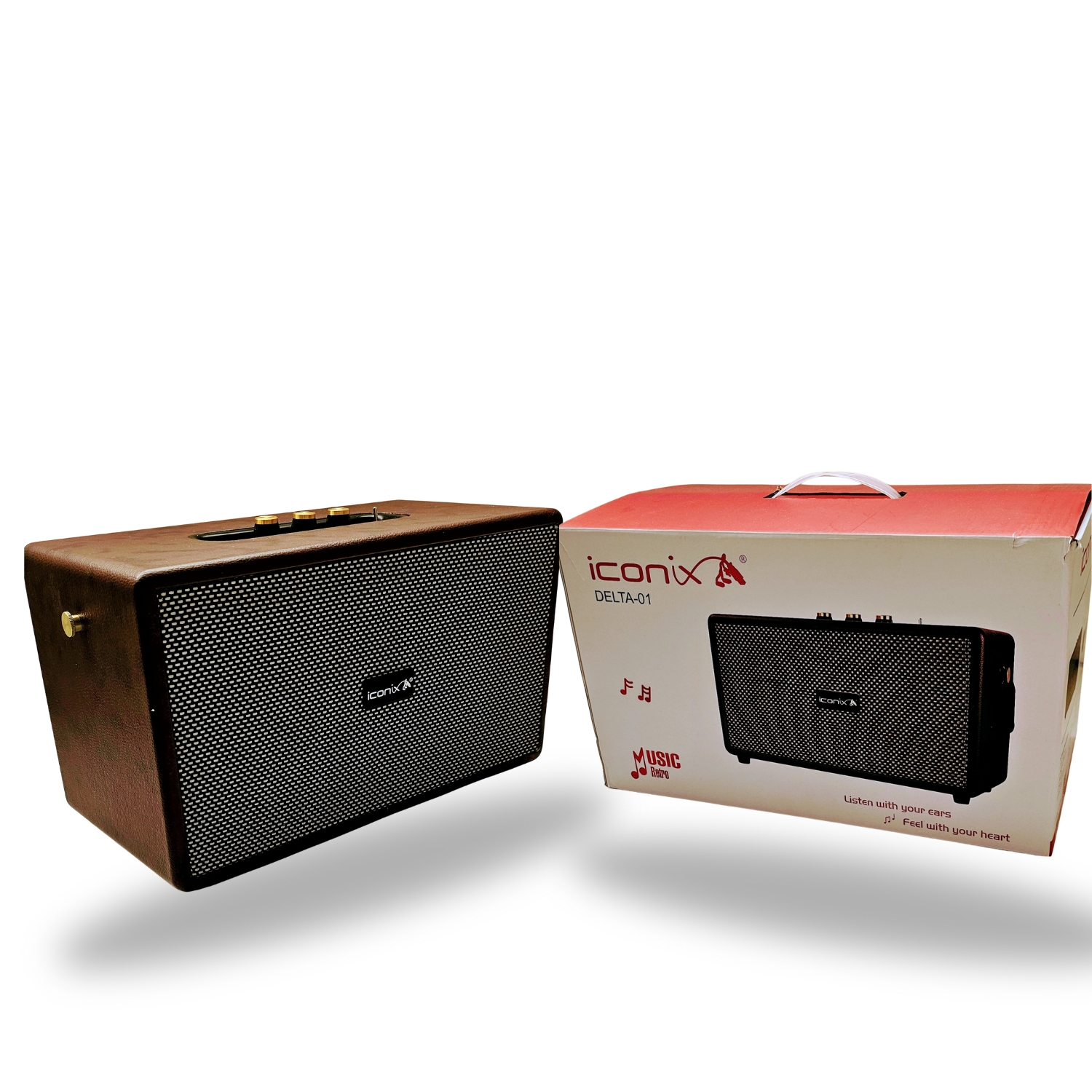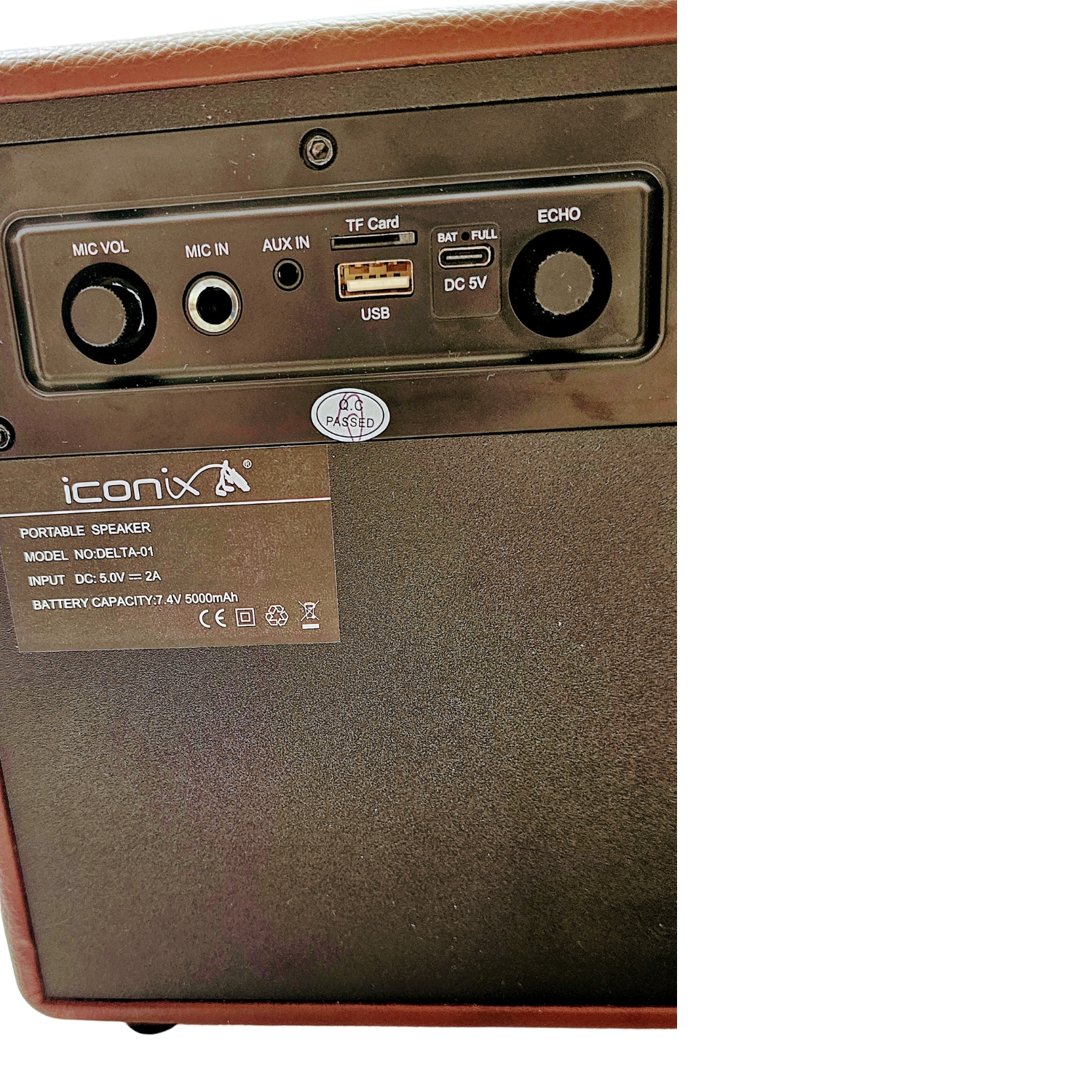 Haut-parleur ICONIX DELTA 01 – Technologie de Connectivité: Bluetooth – Interfaces: USB/Micro SD (TF) – Puissance de sortie: 55 Watts – Capacité de la batterie: 5000mAh – Taille de haut-parleur: 2x 5 pouces +1,5 pouce – Réponse en fréquence: 100 Hz ~ 20 KHz – Rapport signal/bruit: >= 75dB – Entrée de puissance: DC 5V – Contrôle: Volume/Bases/Aigus – Couleur: Noir –
