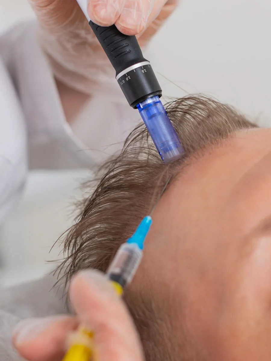 Application de techniques adaptées : PRP, mésothérapie capillaire, exosomes autologues