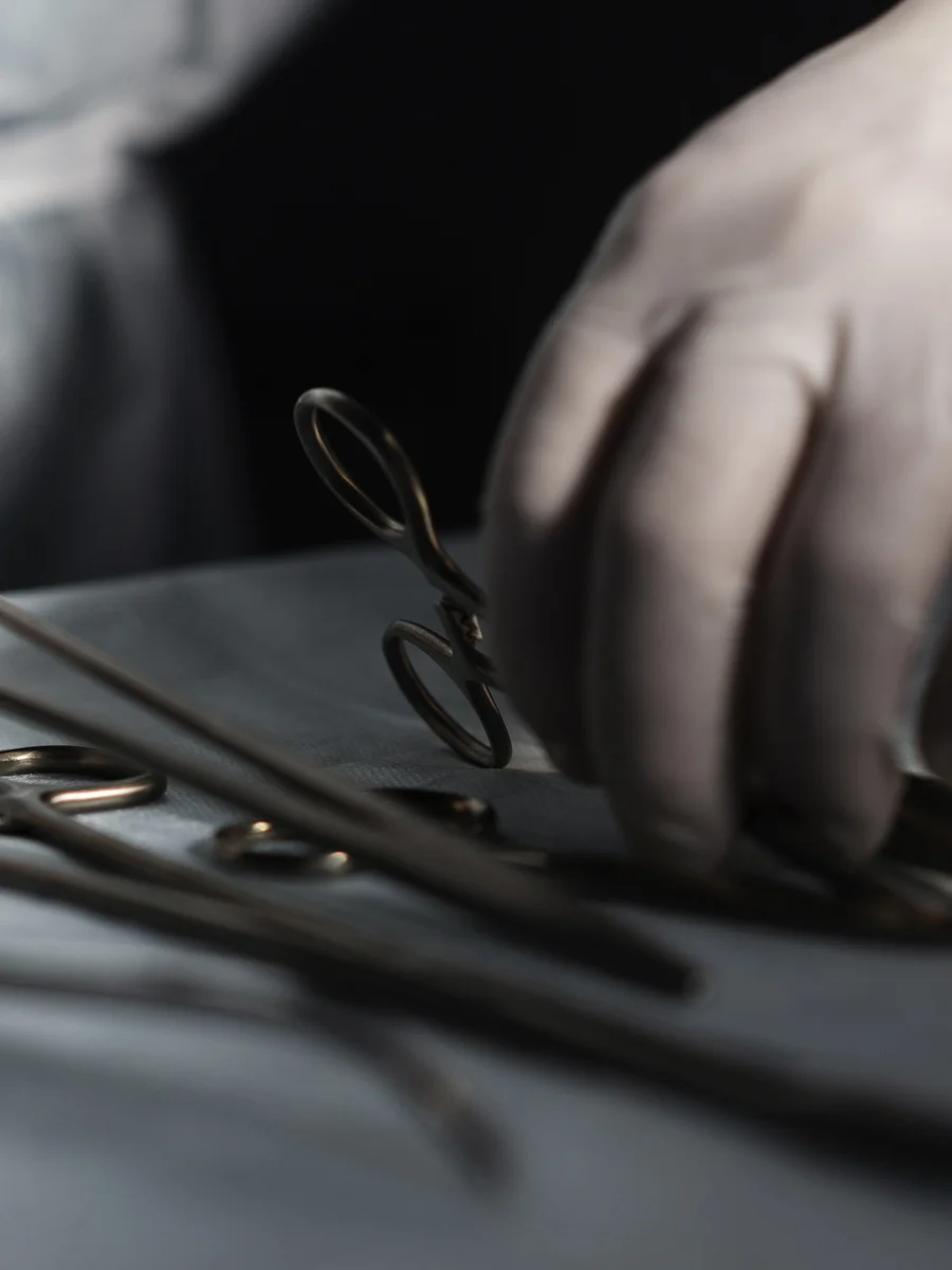 Le spécialiste retire la lésion ou réalise la correction nécessaire avec des instruments chirurgicaux de haute précision.