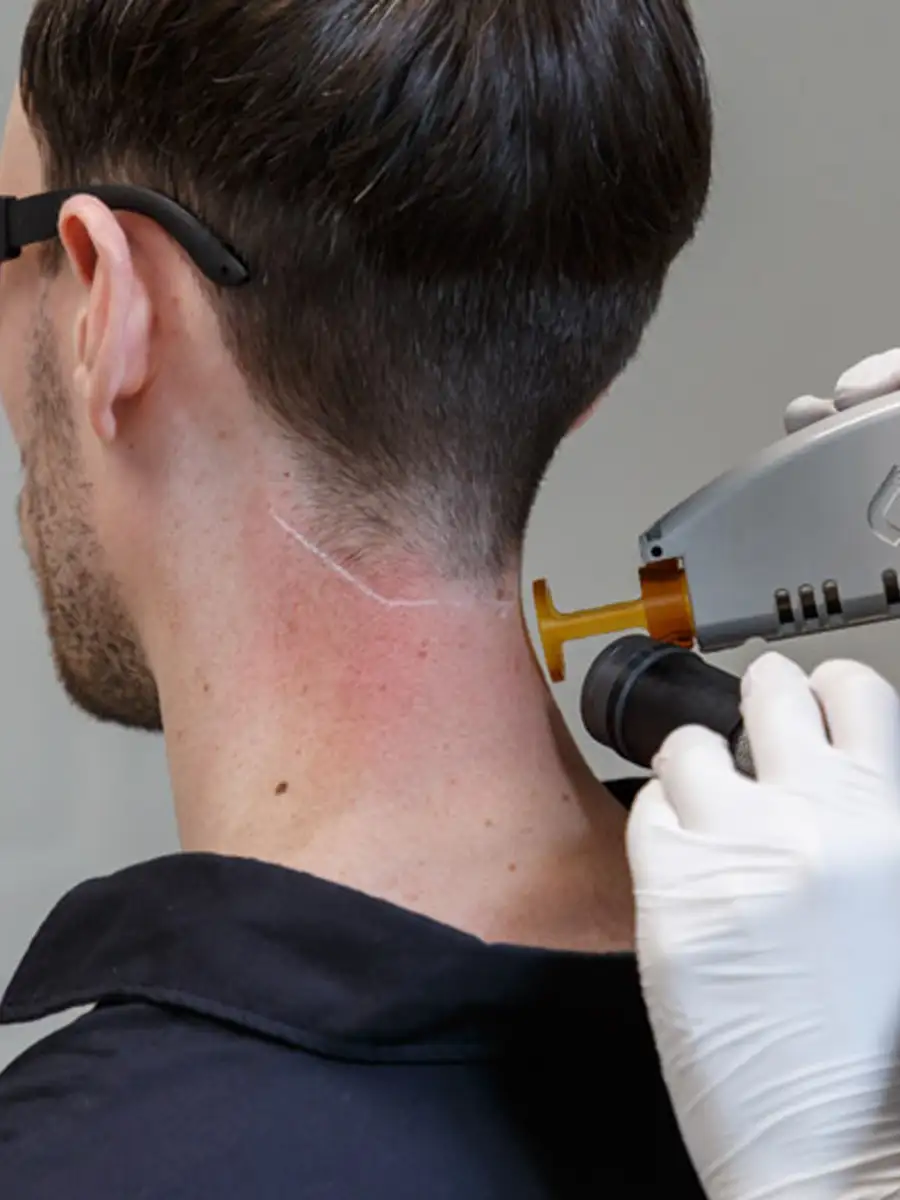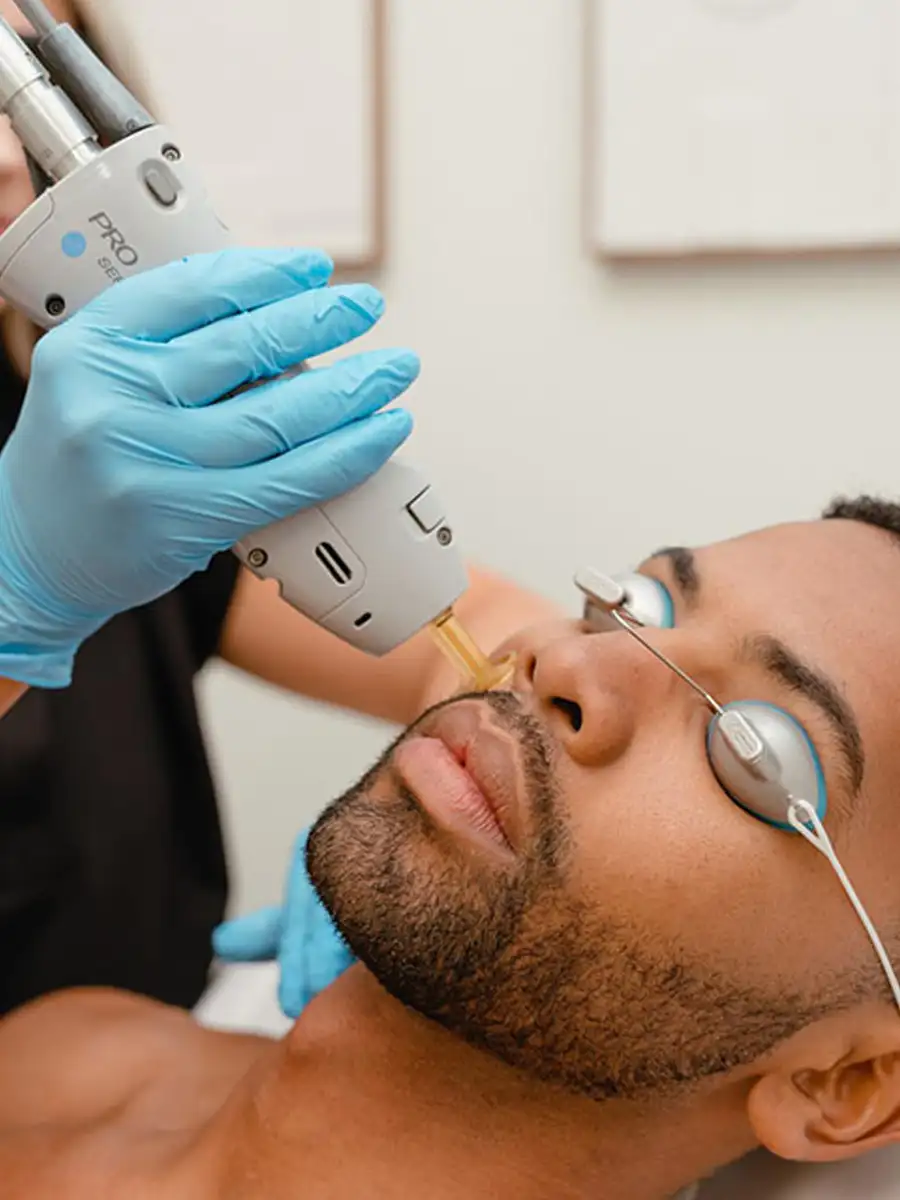 L’épilation laser cible la mélanine du follicule pileux pour détruire le poil à la racine. Elle est particulièrement efficace sur les poils noirs ou châtains, fréquents chez l’homme (barbe, dos, torse).